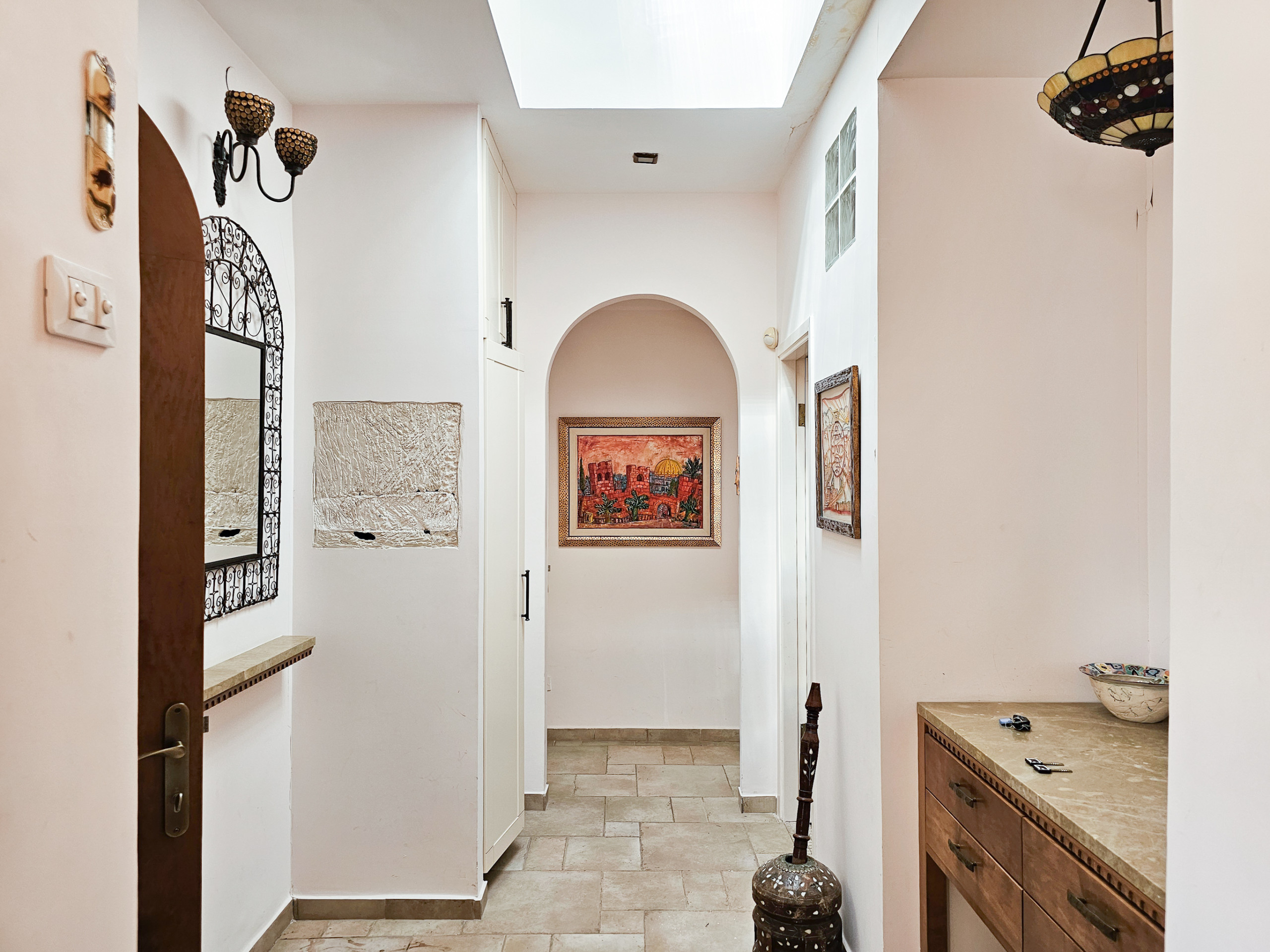 Bienvenue dans notre spacieux appartement de la vieille ville, encadré par d'anciens murs de pierre, des sols en carrelage authentiques et rempli de caractère. Offrant 130 mètres carrés d'un espace magnifiquement conçu, il combine l'authenticité d'une maison traditionnelle en pierre de Jérusalem avec le confort et la praticité d'un appartement moderne. L'appartement dispose également d'une terrasse extraordinaire surplombant les toits de la vieille ville.