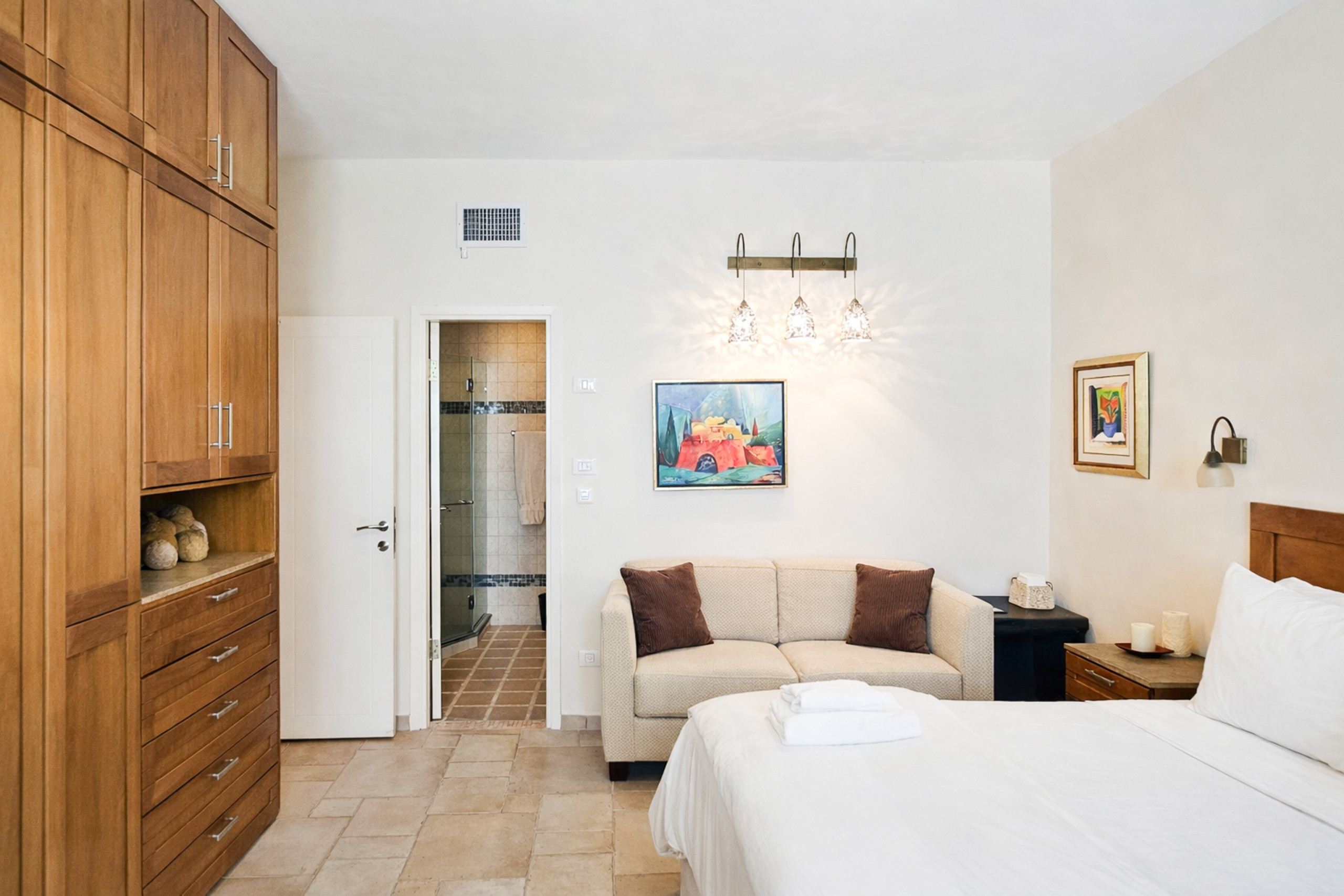 La Vieille Ville de Jérusalem et tous ses trésors cachés sont juste en bas pour que vous puissiez les explorer, en commençant par les rues historiques du quartier juif. L'appartement est à quelques minutes à pied du Kotel (Mur des Lamentations) ainsi que de la porte de Jaffa et du marché aux souvenirs.