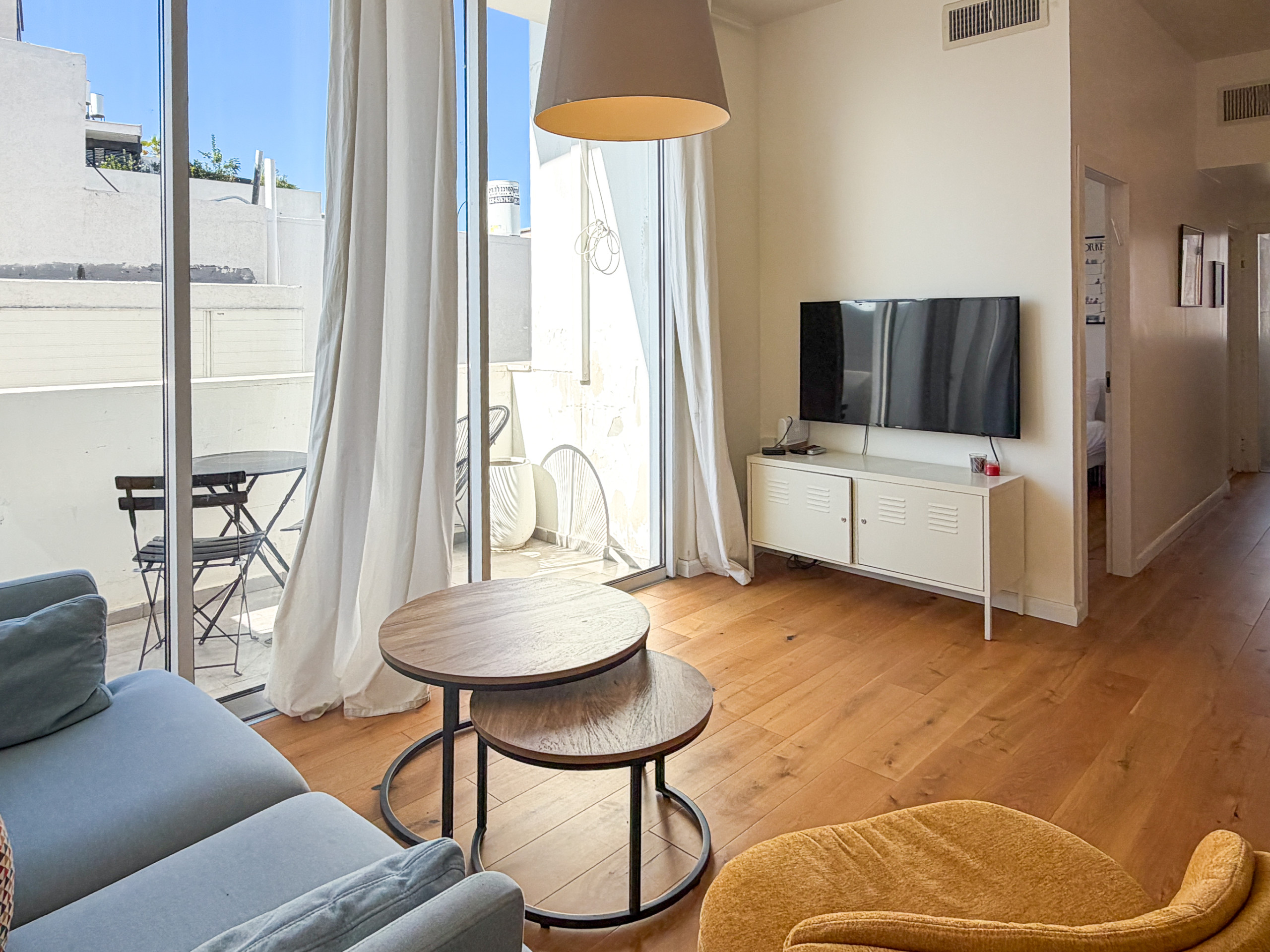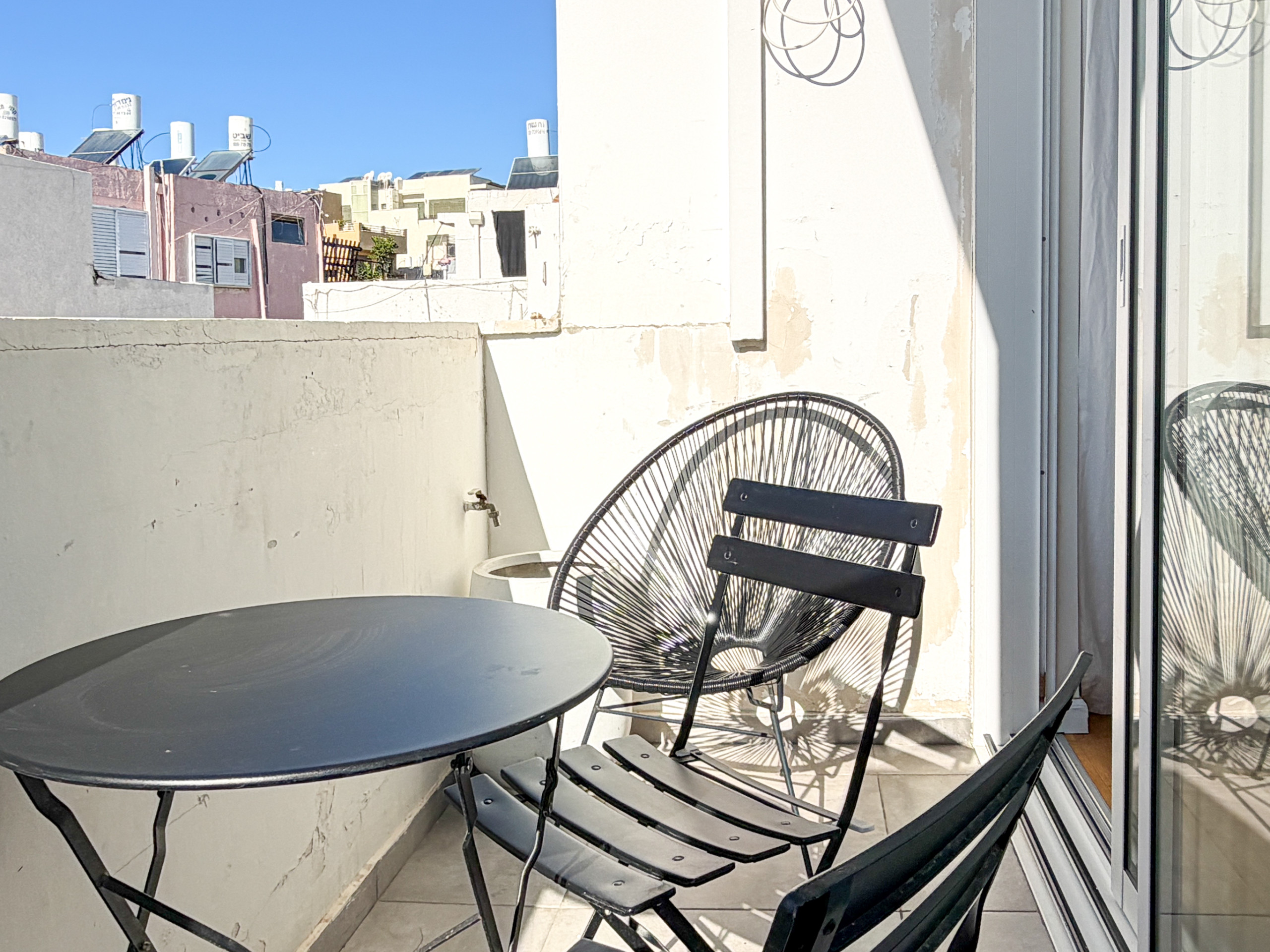 Vous apprécierez de flâner le long de la promenade en bord de mer surplombant la plage mais aussi de fréquenter les bars et restaurants animés le soir, le tout à quelques minutes de l'appartement. Faites vos courses au marché Carmel, l'un des plus grands marchés de Tel Aviv, ou à la foire des artistes sur Nahalat Benjamin, avant de vous détendre pour un déjeuner tranquille dans le charmant quartier yéménite.
