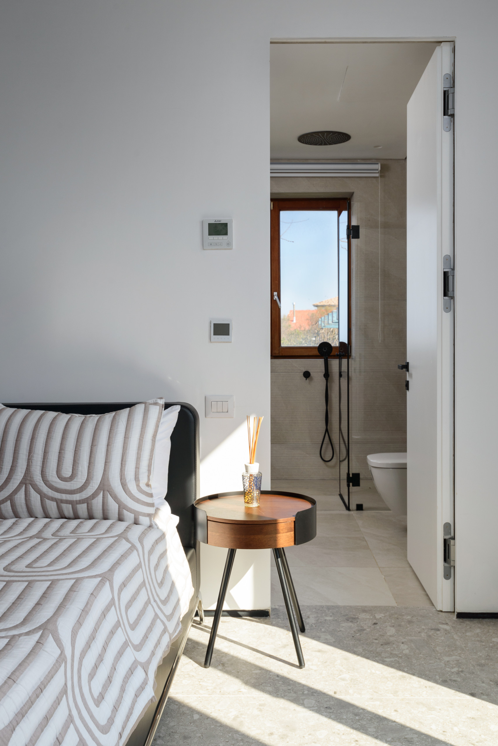 - Quarto 2: Quarto principal com cama de casal, armário de altura total, casa de banho privativa completa com banheira.