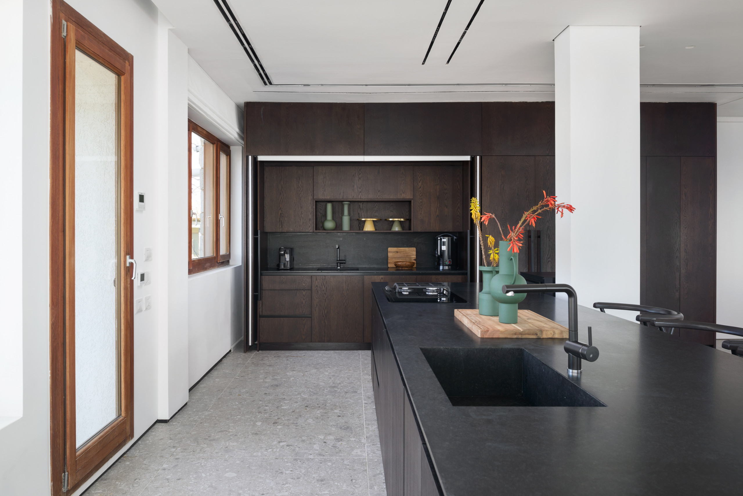 A kitchenette, de inducção, está equipada com frigorífico, microondas, forno, congelador, máquina de lavar louça, louça/talheres, utensílios/cozinha, máquina de café, torradeira e jarro eléctrico.