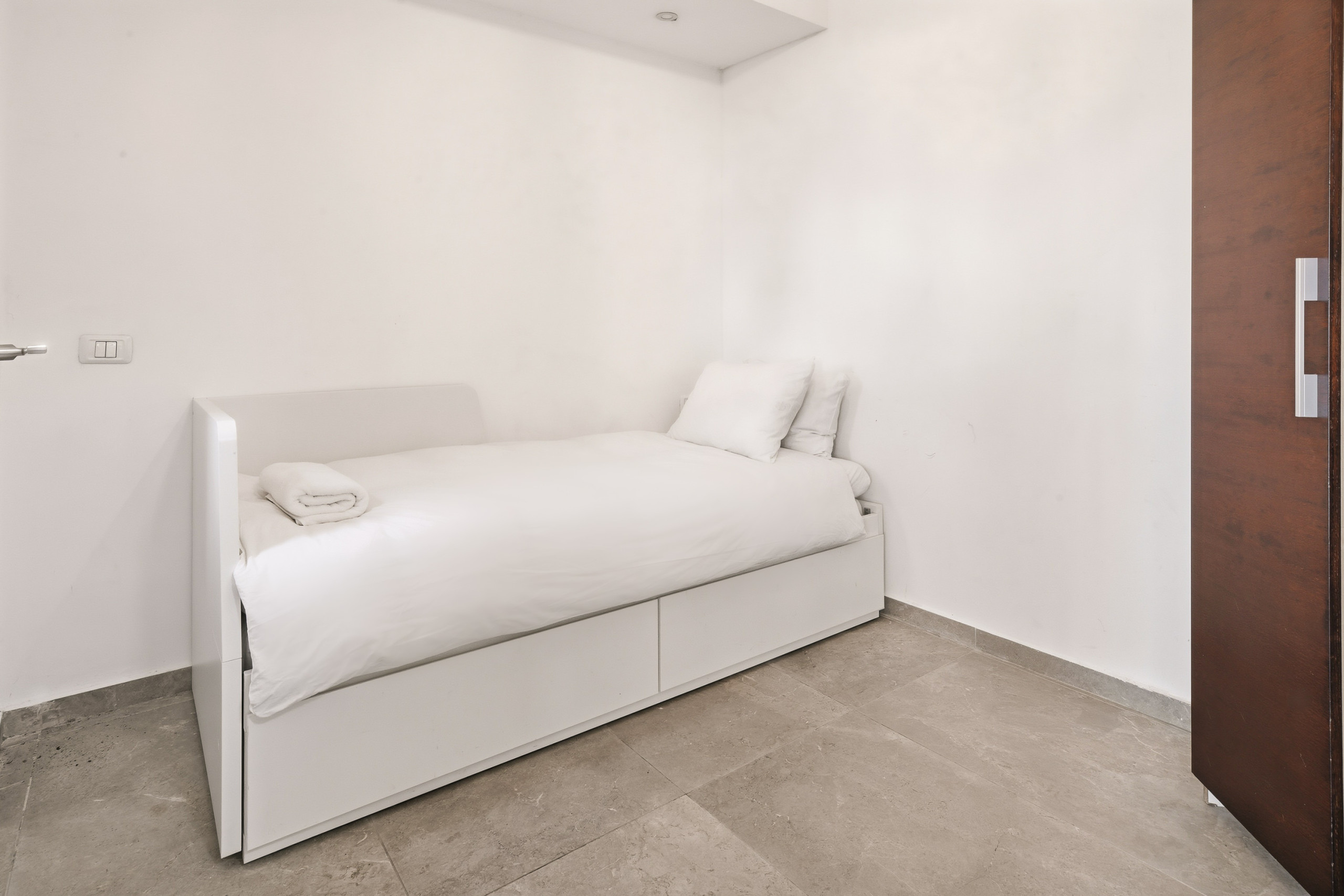 Bedroom 3: 2 foldable single beds which can be stored away to turn the room into an office. This is also the MAMAD (safe room) in case of emergency.