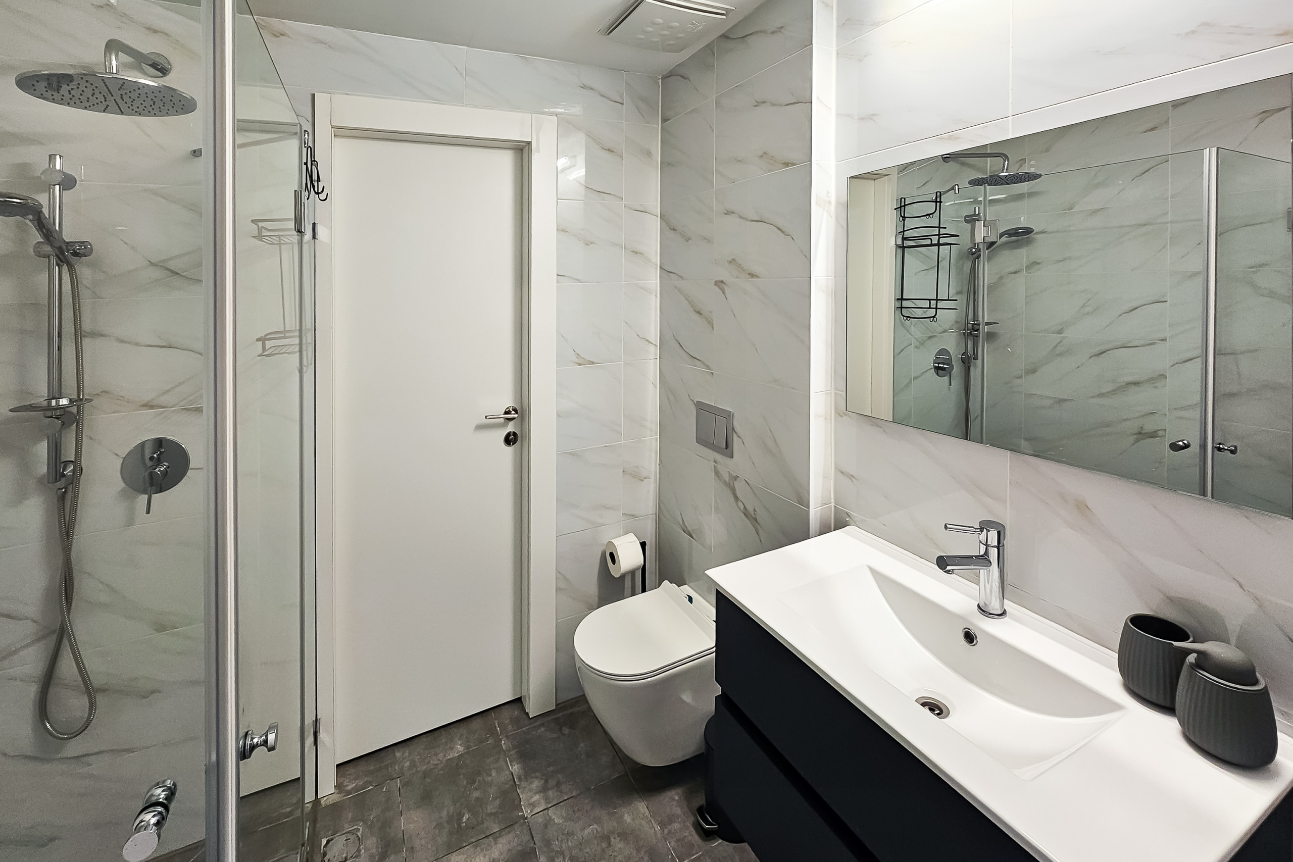 Full bathroom with a walk-in shower.
