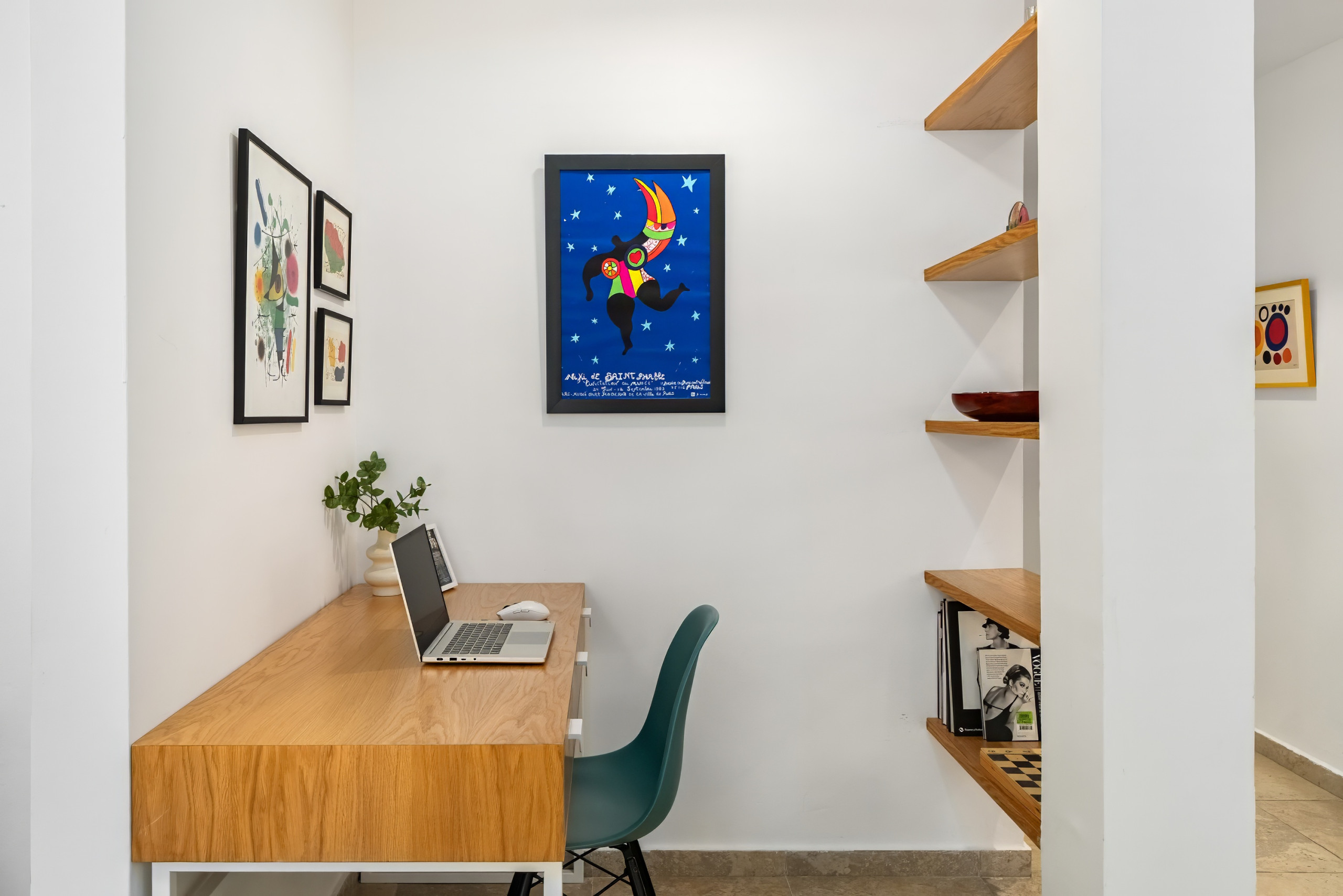The apartment is ideally located on the corner of Dizengoff and Ben Gurion, yet opens on the back alley so it remains quiet.