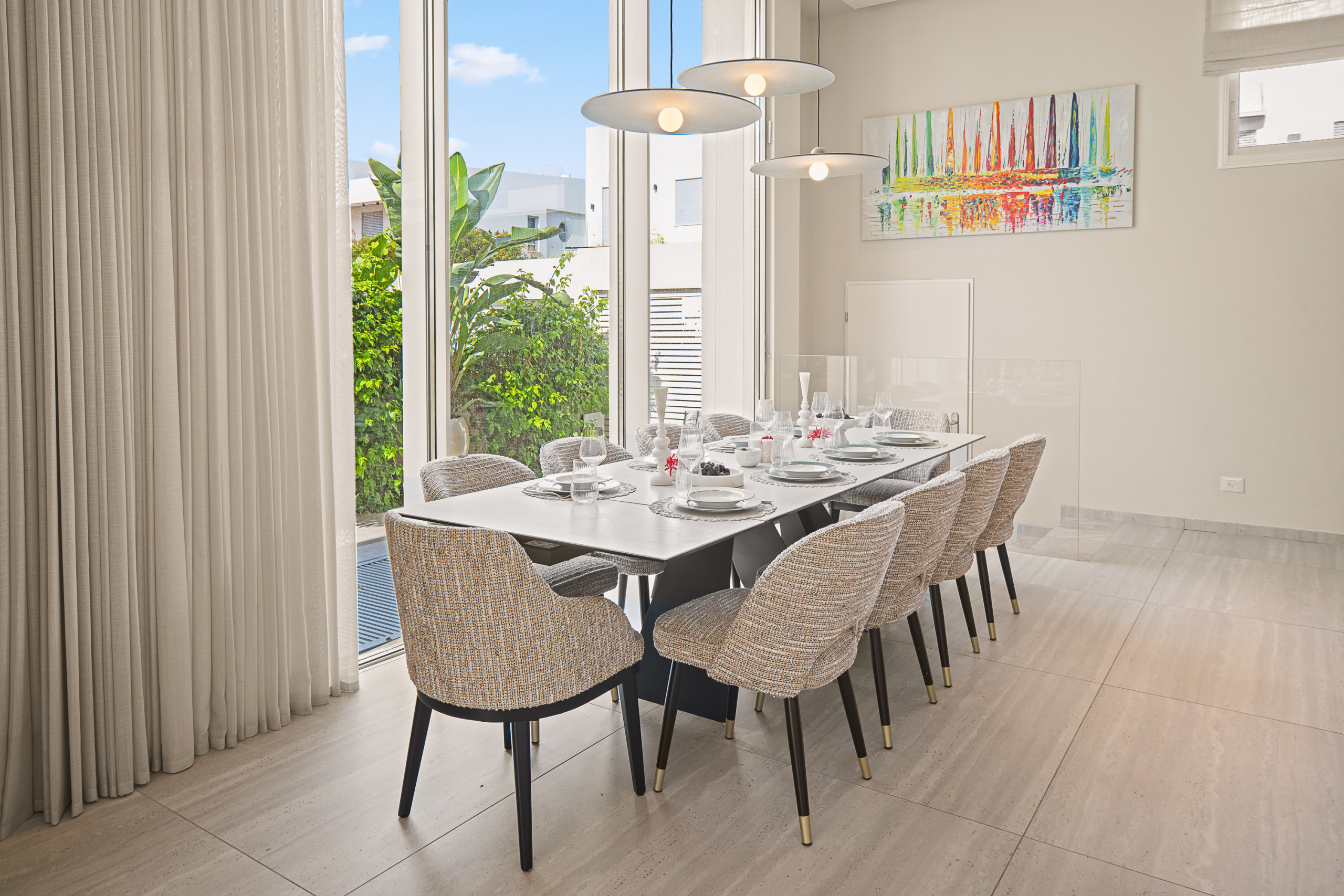 Обеденная зона с большим столом, который может вместить до 10 человек.